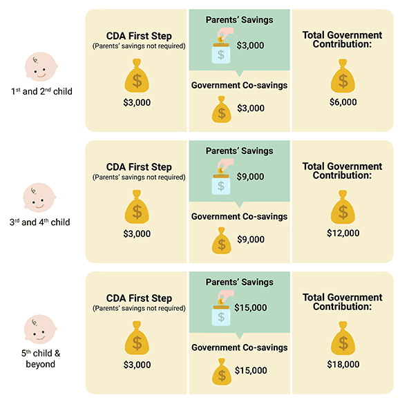 The Baby Bonus scheme is exactly as the name describes it. The government will give you cash bonuses as a reward upon the delivery of your baby. You’ll get $8,000 for the first and second child, and $10,000 for your third and fourth child. Each bonus will be released in 5 payouts.